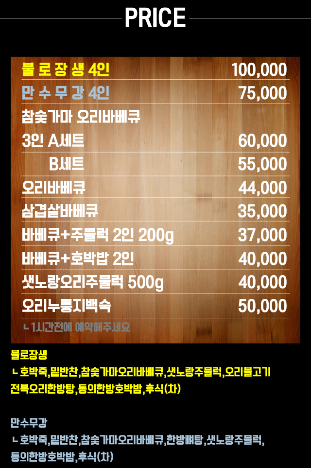 백숙 메뉴는 최소 1시간 전에 예약해주세요.